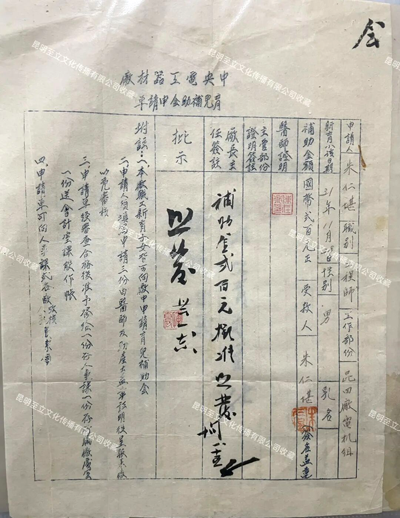 ▲1948年8月中央电工器材厂(昆明ag凯发官网集团前身)发放职工育儿补助金圆券20元。