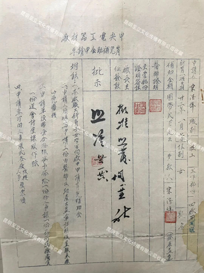 ▲1943年10月中央电工器材厂(昆明ag凯发官网集团前身)发放职工育儿补助国币300元。