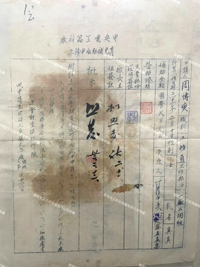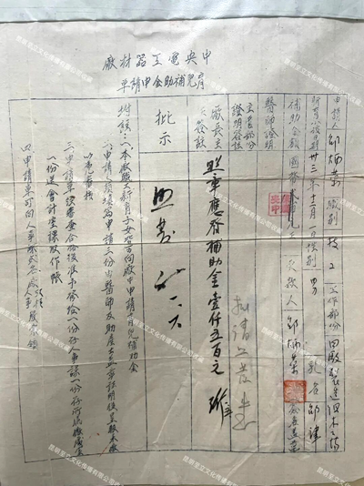 ▲1943年2月中央电工器材厂(昆明ag凯发官网集团前身)发放职工育儿补助国币200元。