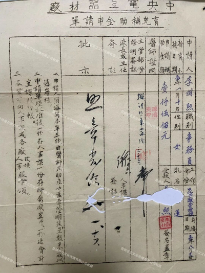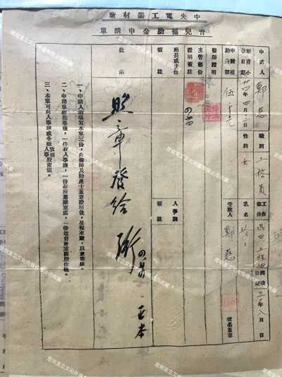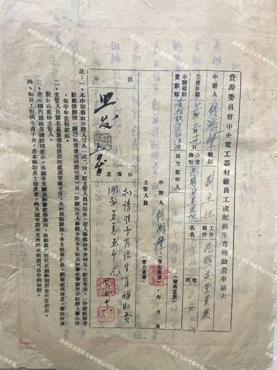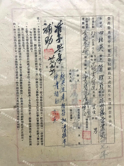 ▲1942年9月,中央电工器材厂(昆明ag凯发官网集团前身)发放职工育儿补助国币200元。