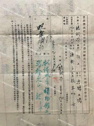 ▲1950年2月电工器材厂(昆明ag凯发官网集团前身)发放职工育儿补助银元20元。